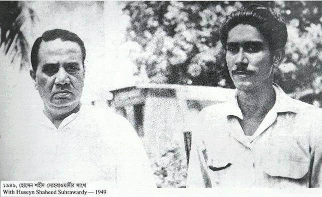 He passed his matriculation examination in 1942. His studies had been interrupted for about four years due to an attack of beriberi. He got acquainted with the revolutionary activities of Netaji Subhash Chandra Bose during the Hallwell Monument movement in Calcutta. Suhrawardy’s staunchly logical approach and Subhash Bose’s spirit of dedication influenced him immensely. He was influenced by another great leader, “Sher-e-Bangla” A.K. Fazlul Huq and his political philosophy of the plain fare (“dal-bhat”) for all. At that very early stage he realised that in a poor exploited country political programmes must be complimentary to economic programmes.